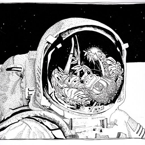 Im Stil alter Comics sind hier surreale Welten entwickelt. Kleines wird groß, schwimmen wird zu fliegen,...